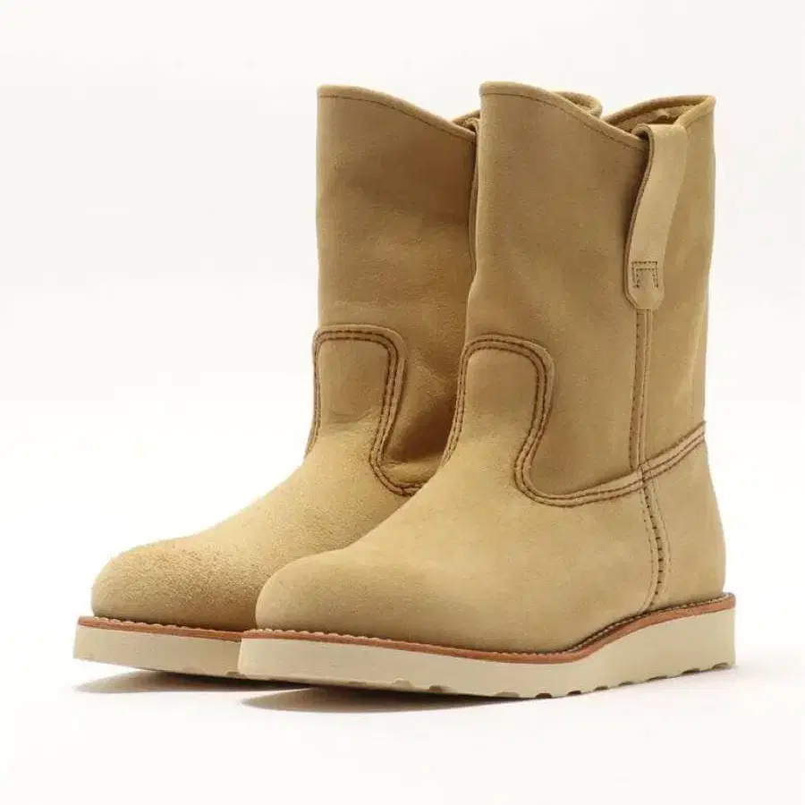 한 번 신고 밖을 조금 걸은 정도입니다. 사이즈 75 50,510엔에 구매 ,RED WING 9-INCH PECOS 제조사 모델번호: 8168 레드윙사는 페코스 부츠를 상표 등록한 후 일련의 상품을 갖추고 1959년에 출시했습니다. 당시에는 모든 페코스 부츠가 힐이 달린 것이었지만, 2년 후인 1961년에 워크 부츠로 높은 평가를 얻고 있던 트랙션 트레드 밑창을 단 #866을 라인업에 추가했습니다. 하얗고 두꺼우며 쿠션성이 풍부한 바닥이 평평한 밑창은 어떤 지면에서도 신기 편하고 피로를 덜어주었습니다. 약간 짧은 통, 웨스턴 타입의 부츠로서는 둥근 발가락, 그리고 높은 기능성을 가진 밑창의 조합으로, 이 #866도 꾸준히 평가를 높여 롱셀러가 되었으며, 오늘날에도 미국 남서부나 텍사스 등 웨스턴 부츠 문화를 가진 지역에서 작업화로도 신기고 있습니다. #8168은 이 #866을 베이스로 한 일본 기획 상품으로 1996년에 탄생했습니다. 당시, 홍차색 오로라셋 포티지 #8866, 두꺼운 도막을 가진 블랙 크롬 #8169와 함께 레드윙의 3대 가죽이었던 베이지색 러프아웃 가죽, 호손 애버린을 사용한 모델로 출시되었습니다. 이 가죽은 가죽의 기모면을 얇게 슬라이스하여 만드는 많은 스웨이드 가죽과 달리, 가죽의 섬유 밀도가 가장 높은 부위인 은면(가죽 표면)을 안쪽으로 사용하고 기모면을 바깥쪽으로 사용하는, 즉 가죽을 뒤집어 사용하는 러프아웃 가죽이며, 원래 아웃도어용 신발에 많이 사용되었습니다. 신을수록 얼룩 등도 깊은 멋이 되는, 경년 변화를 즐길 수 있는 가죽입니다. [ RED WING / 레드윙 ] 1905년, 미국 미네소타주 레드윙에서 찰스 벡맨에 의해 설립되었습니다. 창업 당시부터 퀄리티의 높은 품질과 기능적인 디자인은 높은 평가를 받고 있습니다.