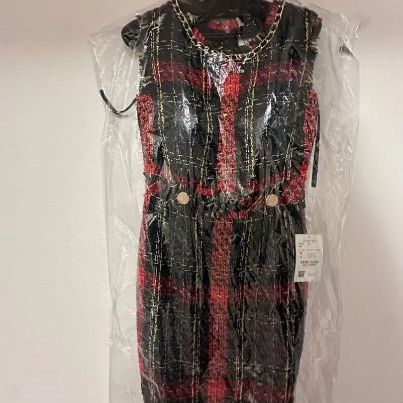 an 레드 트위드 체크 무늬 드레스 S 사이즈