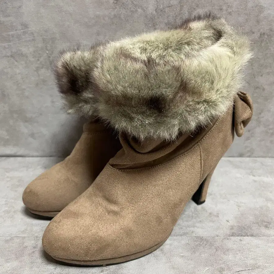 • 새상품급 퍼 달린 베이지 스웨이드 부츠