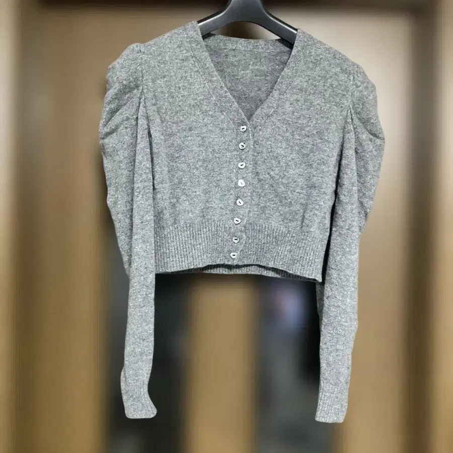 cygne 그레이 퍼프 슬리브 크롭 가디건