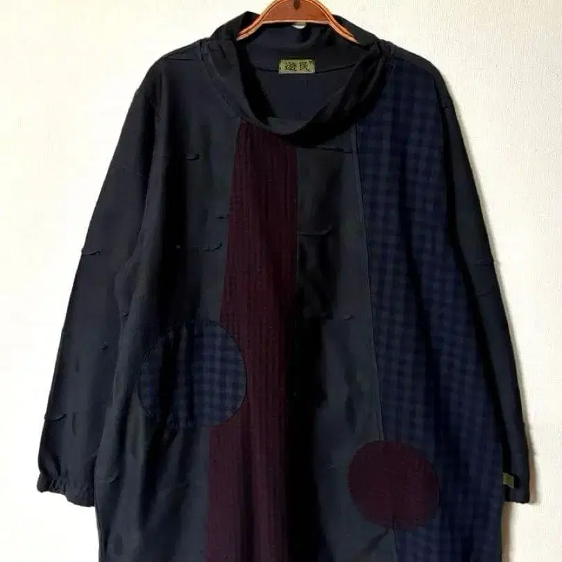 유민 루즈핏 튜닉 패치워크 라운드 패턴 다크 네이비 (네이비 계열)