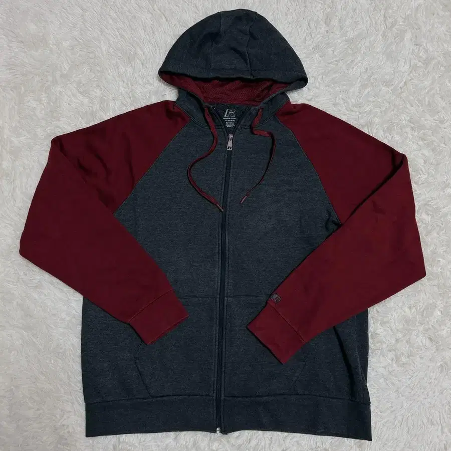 RUSSEL 그레이 x 빨간색 풀 집업 후드티 빅사이즈 XL 후드 메쉬