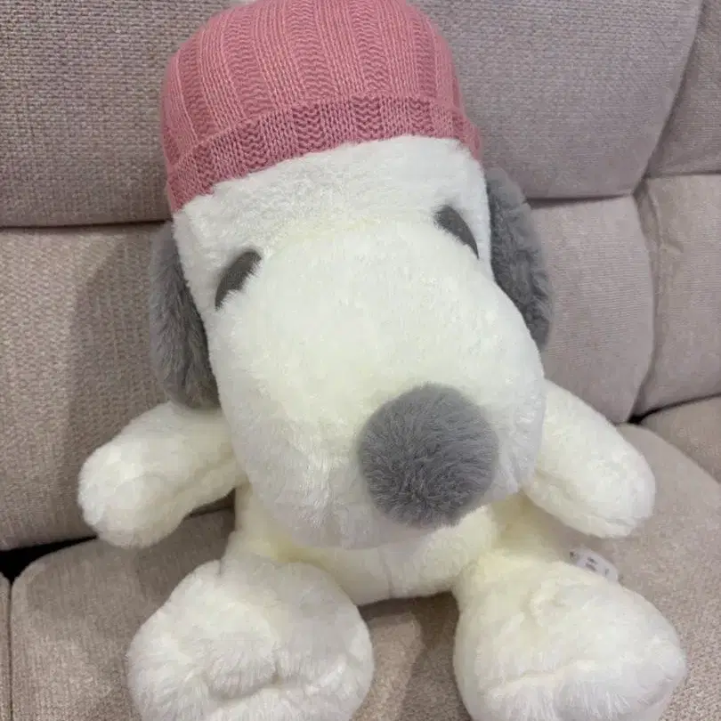 스누피 봉제 인형 니트 모자 핑크