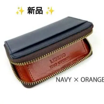 LIBERO 리베로 네이비 x 오렌지 코인 케이스 고급 이탈리아 가죽제