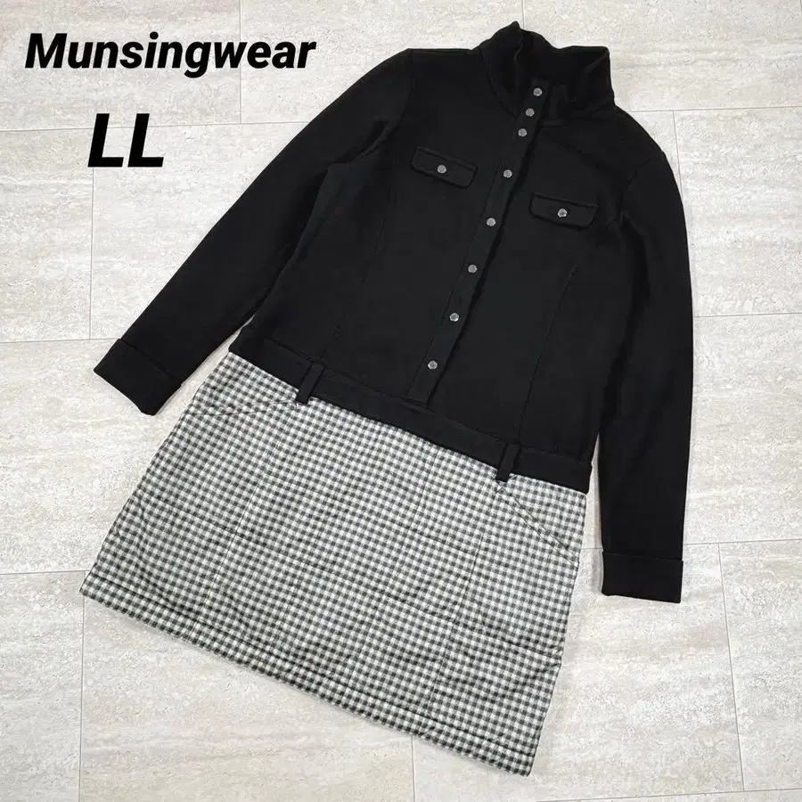 [먼싱웨어] 긴팔 원피스 LL 절개 가을/겨울 블랙 체크 충전솜