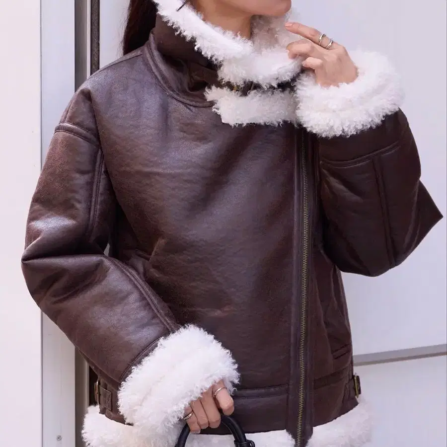 [ 미개봉 새상품 택 포함 ] 페이크 무스탕 자켓 브라운 여성용
