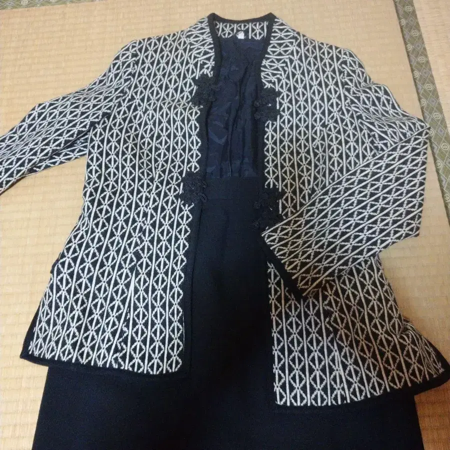 블랙 화이트 기하학 패턴 자켓 스커트 세트