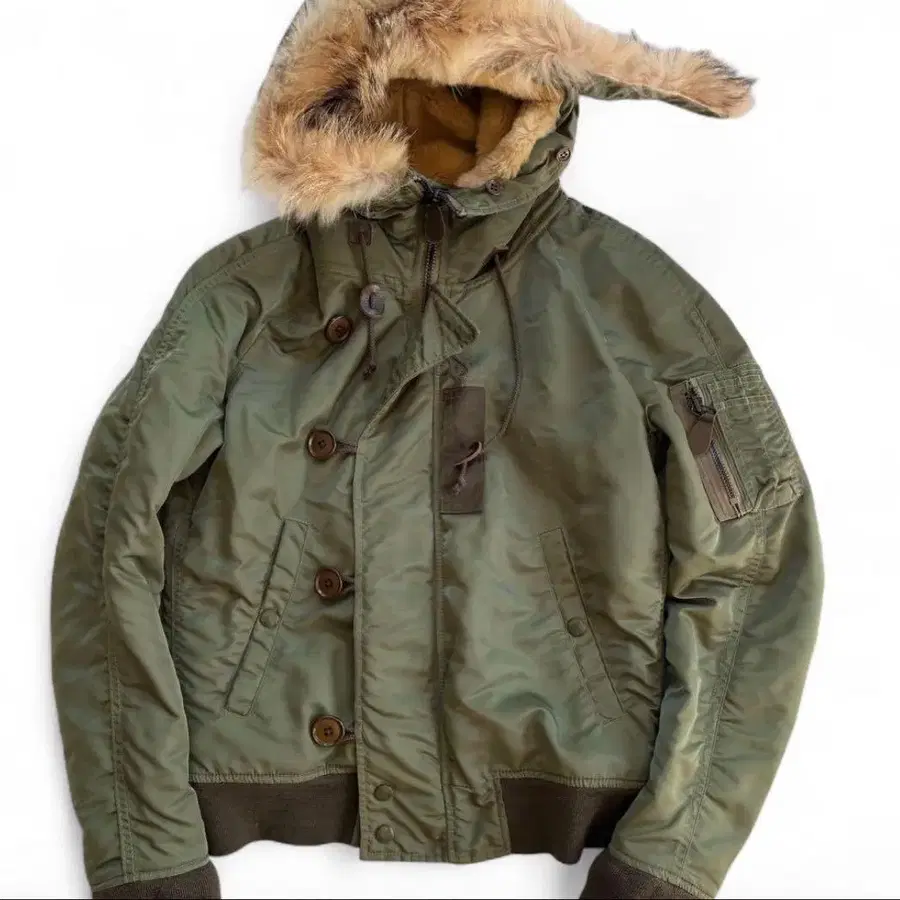 올리브 그린 MA-1 자켓 인조 모피 부착