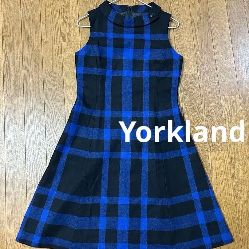요크랜드 체크 무늬 울 원피스 파랑 사이즈 7AR 블루
