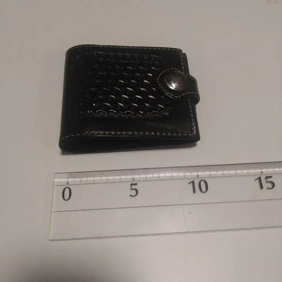퍼니 블랙 가죽 이단 접이식 지갑 바스켓 스탬프