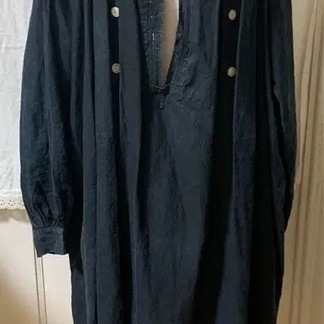 1800년대 후반~1900년대 초창기에 만들어진 인디고 스모크 Biaude (비요드). 원래 '농부'나 '목동'이 얼룩을 막기 위해 의류의 가장 위에 착용했던 워크웨어입니다. 가는 실을 사용하여 고밀도로 짜 올린 린넨 원단은 린넨이라고는 믿기지 않을 정도의 광택 있는 질감을 느낄 수 있습니다. 모두 손바느질로 만들어졌으며, 섬세한 개더와 버튼홀, 수선 흔적 또한 예술적인 아름다움입니다. 여러 번 반복하여 손 염색한 깊은 인디고 색조, 100년의 세월을 거쳐 탄생하는 색빠짐. 이 인디고 스모크의 빛과 분위기에는 항상 놀라게 됩니다.