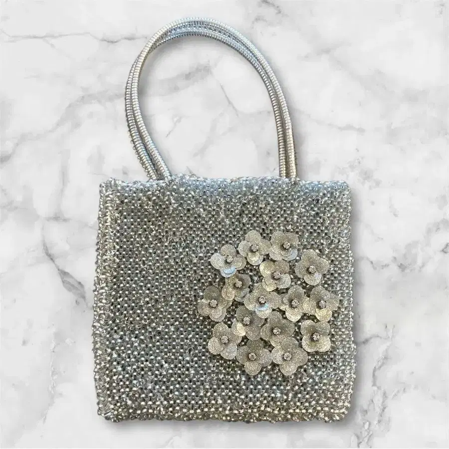 [새상품급] 실버 글리터 꽃 모티브 와이어 백