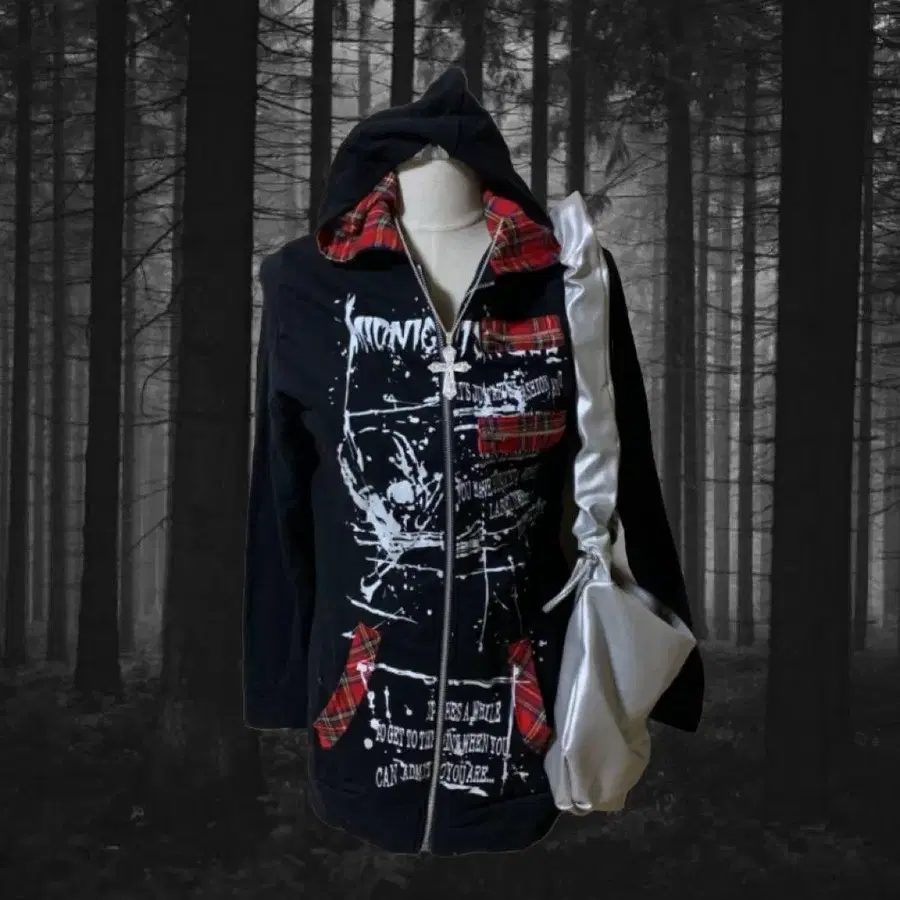 y2k 다크코어 후드티 해골 블랙 체크 빨간색