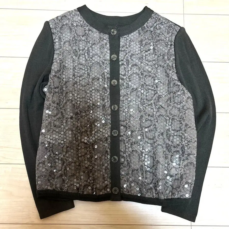 새상품 이타리야 스팽글 긴팔 가디건 브라운 L