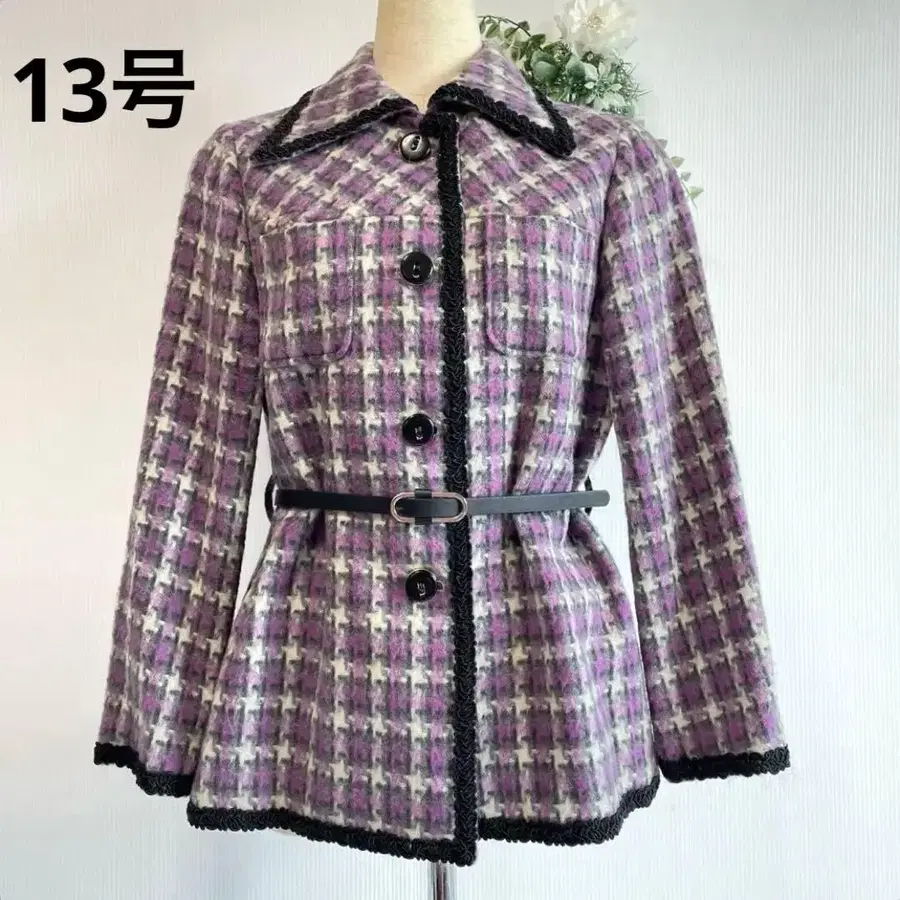 레트로한 보라색 체크 무늬 자켓 트위드 큰 사이즈의 숏코트 LL