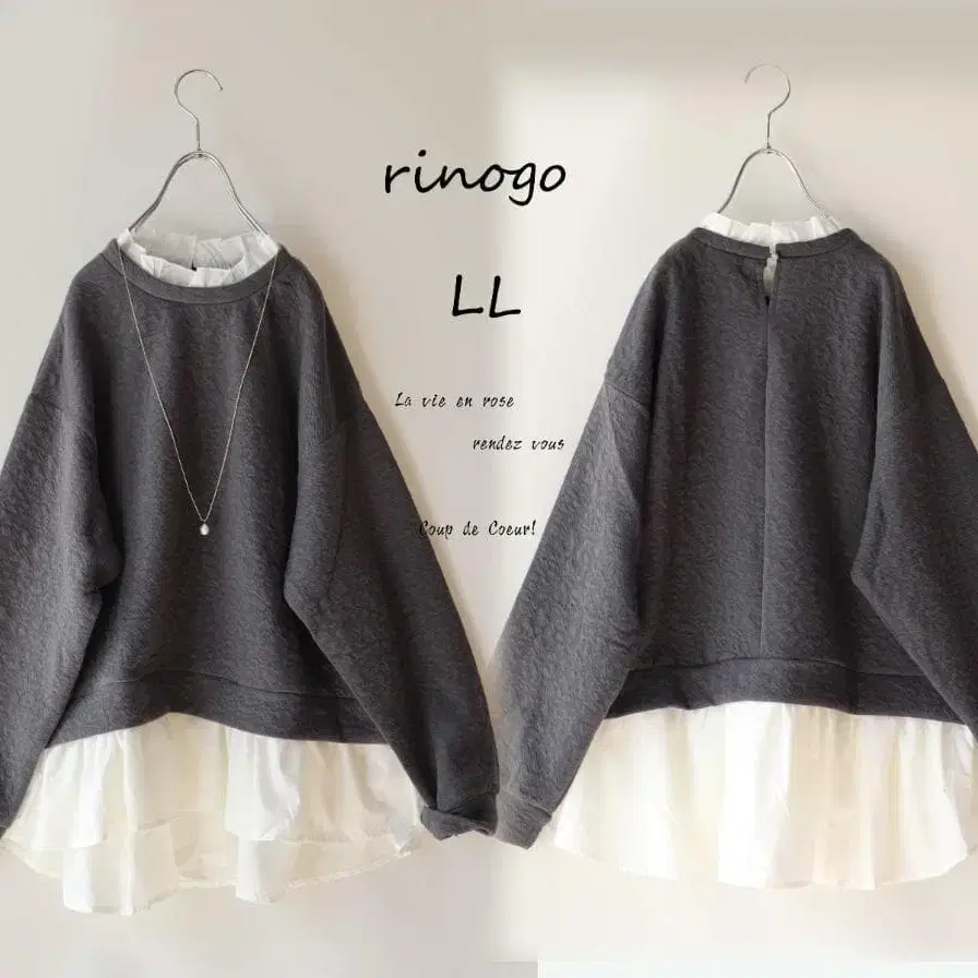 새상품 할인 LL 그레이*화이트 프릴 셔츠 절개 맨투맨 티셔츠 빅 사이즈