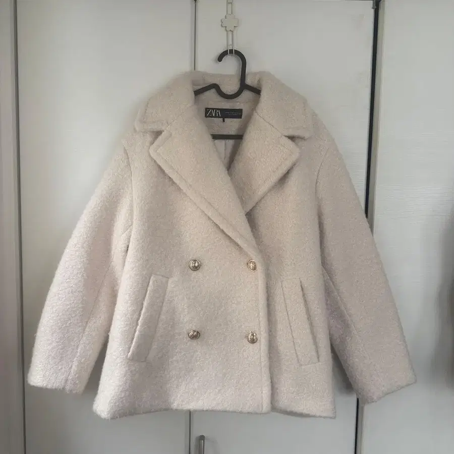 미사용급 ZARA 부클 더블 브레스트 미디 기장 코트 XS