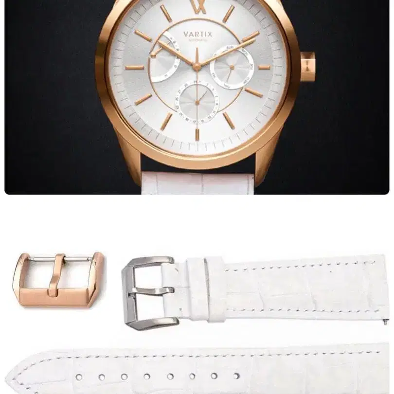 VARTIX ALIVE 벨트 시계 GACKT TAUJAN 타우잔 표시 사이즈 SS 버클 화이트 가죽 벨트, 핑크 골드 버클 세트입니다. ※ 시계 본체는 부속되지 않습니다. VARTIX ALIVE 전용 사이즈 비순정 벨트입니다. 구형 ALIVE에도 동일하게 장착 가능합니다. [ 상태 ] 미사용 새상품. 소재: 악어 엠보싱(소가죽)