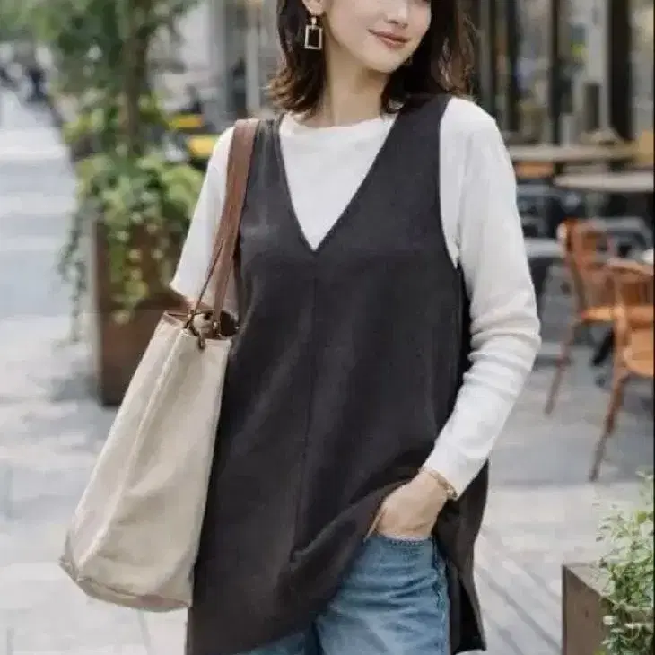 CYNICAL 슬리브리스 V넥 니트 원피스 M 다크 그레이