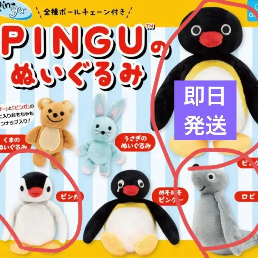 핑구 가챠가챠 봉제 인형 키링 + 파우치 4종 세트