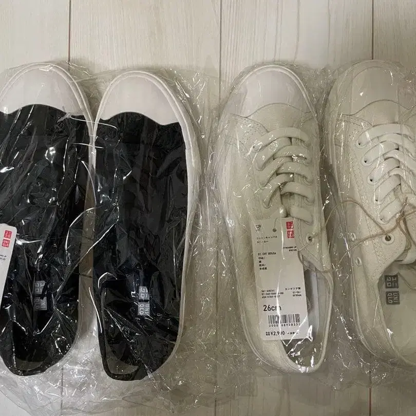 유니클로 코튼 캔버스 스니커즈 화이트 블랙 26cm