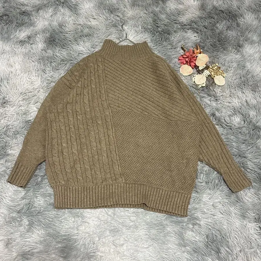 짜임을 전환하여 패치워크처럼 표정이 풍부하게 완성한 주역급 니트