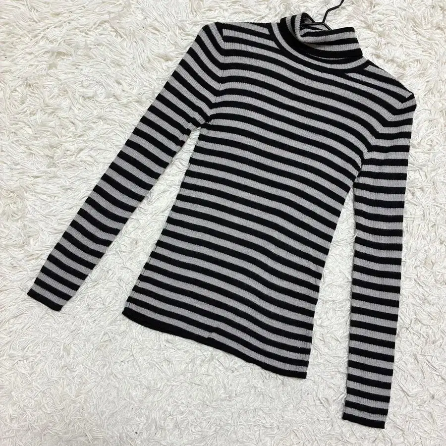 로페피크닉 터틀넥 리브 니트 보더 무늬 아크릴 혼방 핏감