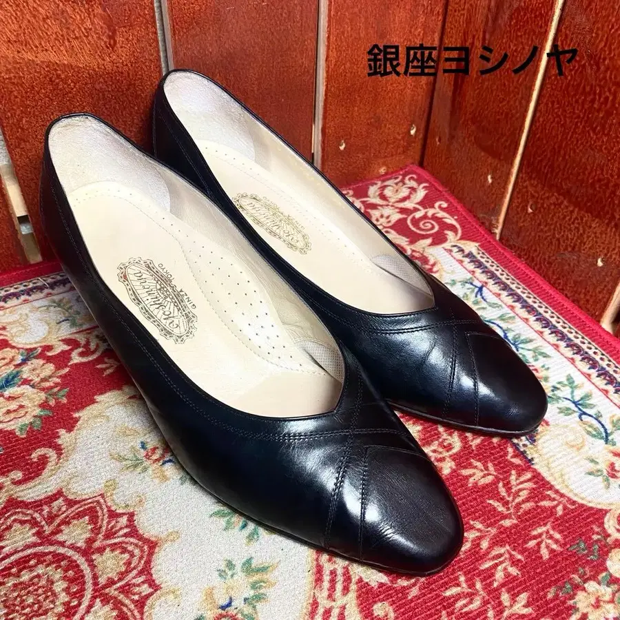 미사용품 Yoshinoya GINZA 천연 가죽 펌프스 블랙 22.0E