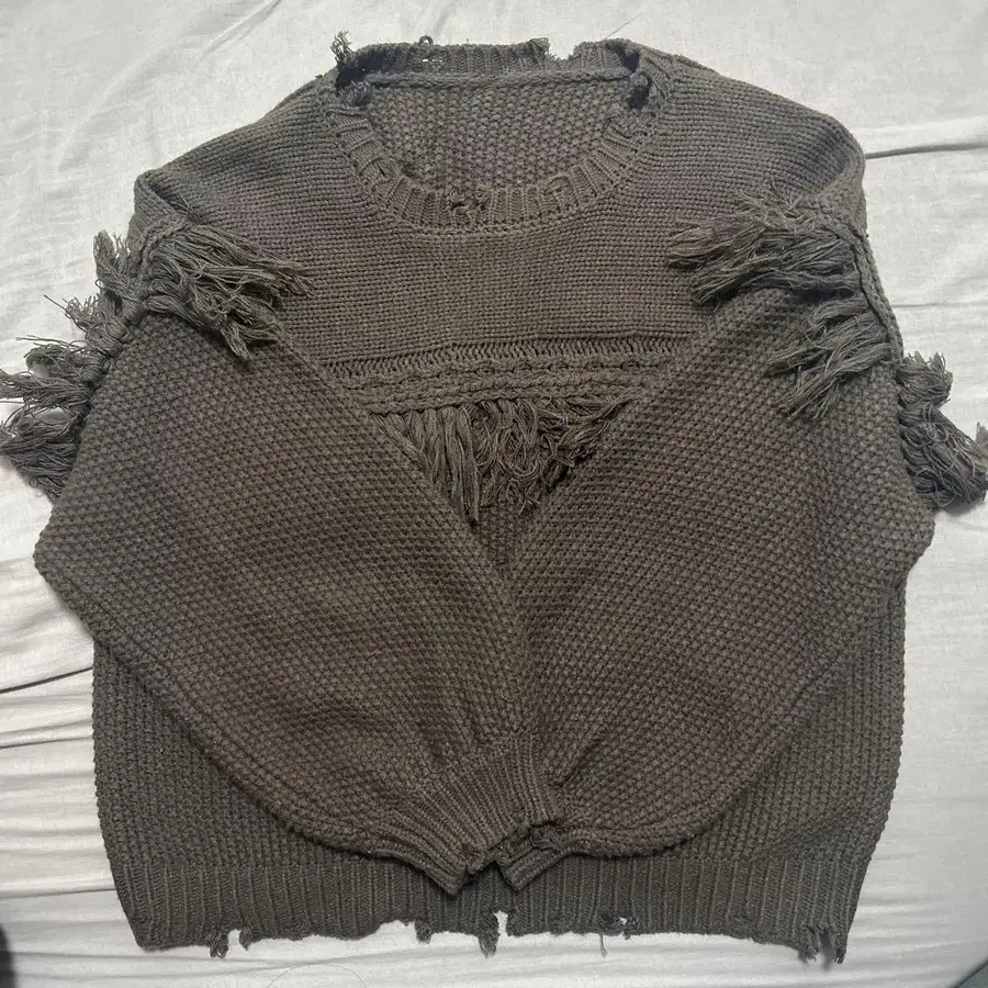 프린지 장식 애쉬 브라운 스웨터 F 사이즈