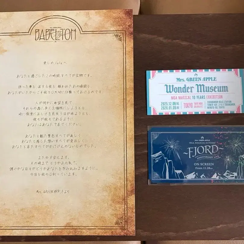 미세스 기념품 피요르드 영화 특전, 원더 뮤지엄 입장권, 바벨 편지