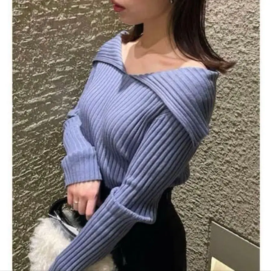 [ 목 부분의 오픈 카라로 내추럴함과 여성스러움을 돋보이게 하는 와이드 리브 니트 ]
