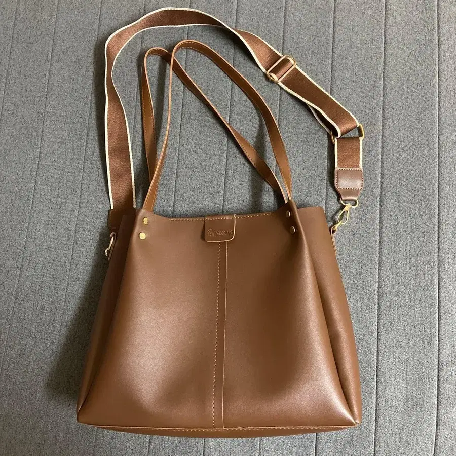 브라운 합성 피혁 토트백