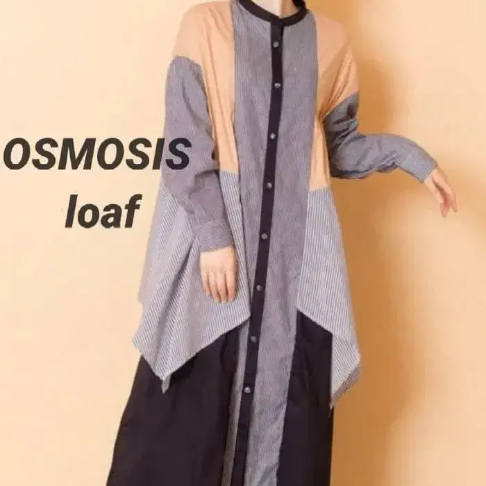 Osmosis 배색 절개 셔츠 원피스 롱 밴드 카라 셔츠 루즈핏