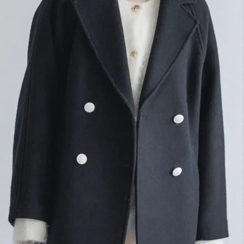 • 멜톤 볼륨 슬리브 오버 롱 더플 코트