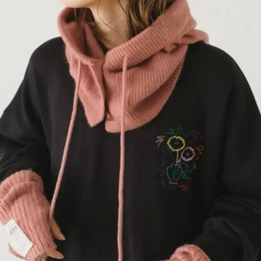 [ Kastane ] 니트 장미 발라클라바 & 리브 니트 암커버 pink