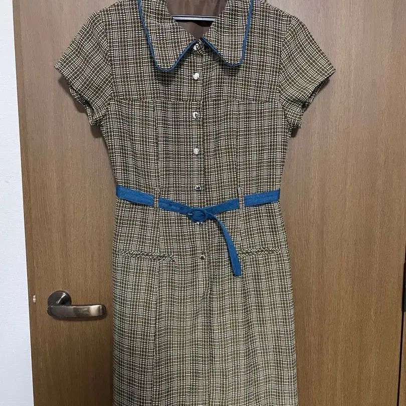 옷깃과 벨트는 파란색입니다. 벨트는 탈부착 가능합니다.