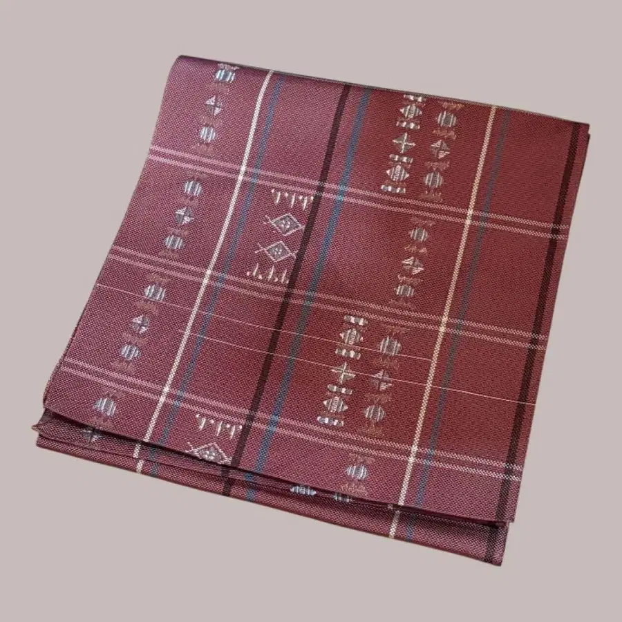[ 새상품급 ] 나고야 오비 적자색 스트라이프 무늬