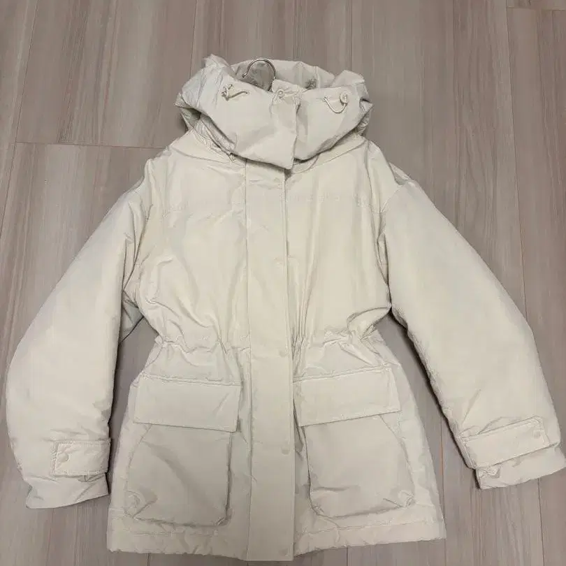 UNIQLO 화이트 하이브리드 다운 자켓 후드 부착