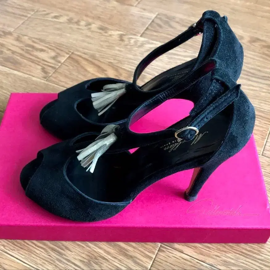미사용급 fitfit 펌프스 태슬 블랙 웨지솔 라메