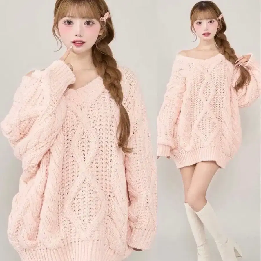 ︎ .* ︎ .* ❤︎ .* 핑크의 입체감 있는 케이블 짜임이 존재감 발군의 주역급 니트탑 ♡