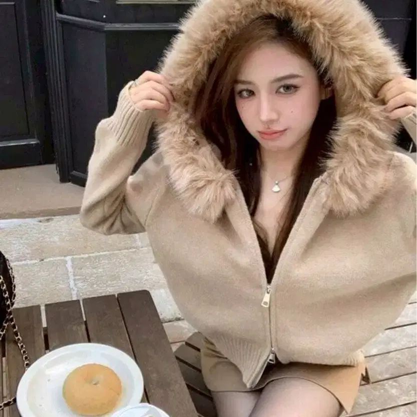 완판템 SHEIN 쉬인 퍼 달린 니트 후드티 베이지 M 사이즈