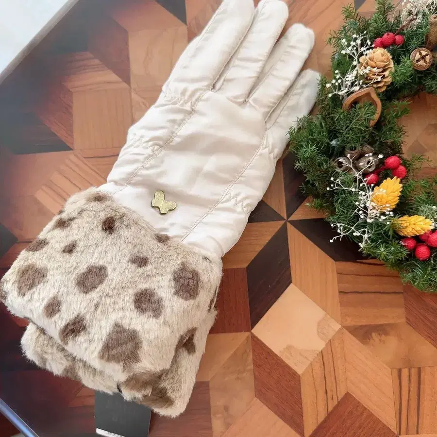 안나수이 ANNA SUI 레오파드 무늬 퀼팅 장갑 에코 퍼 포함 크림색