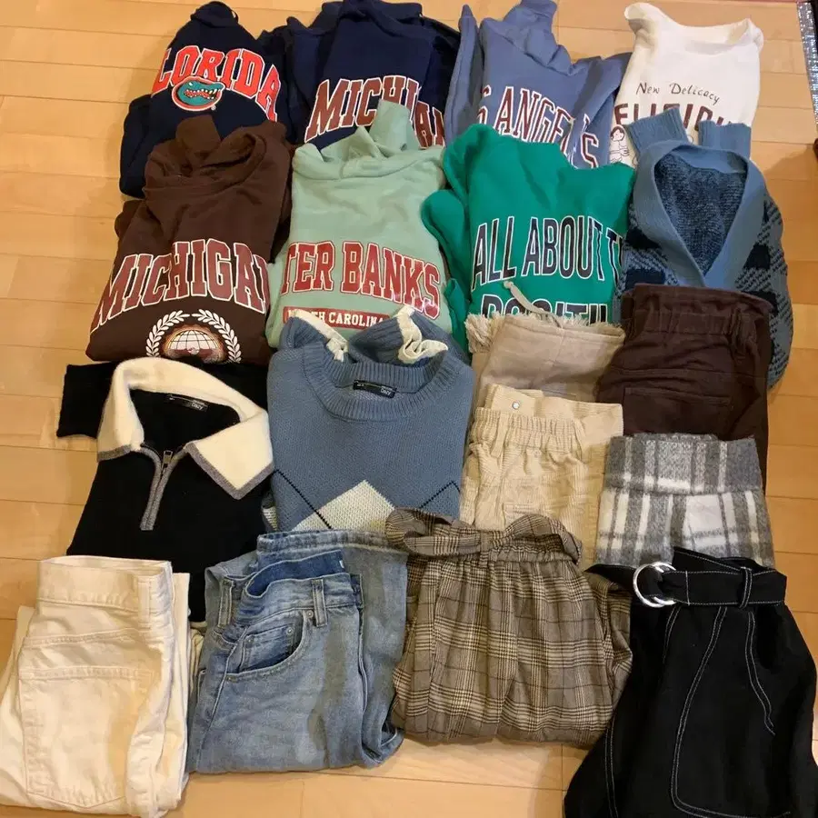 겨울 의류 묶음 판매 트레이닝복, 니트, 스커트, 팬츠 총 17벌