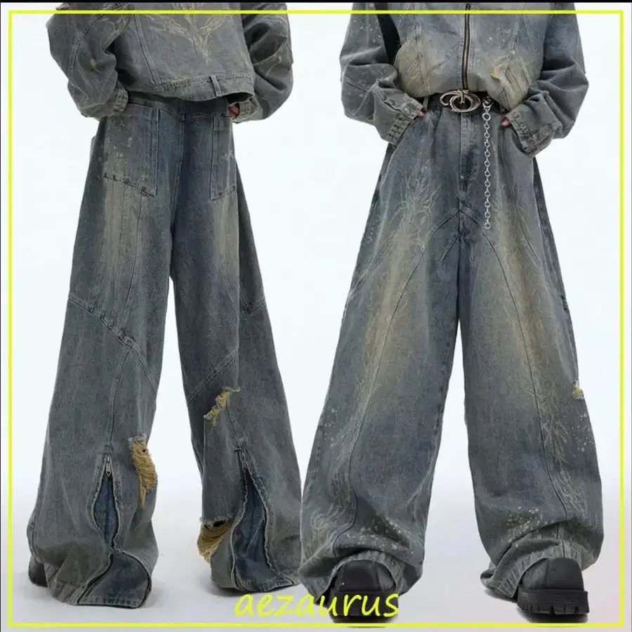 ARGUECULTURE 데미지 가공 와이드 데님 팬츠