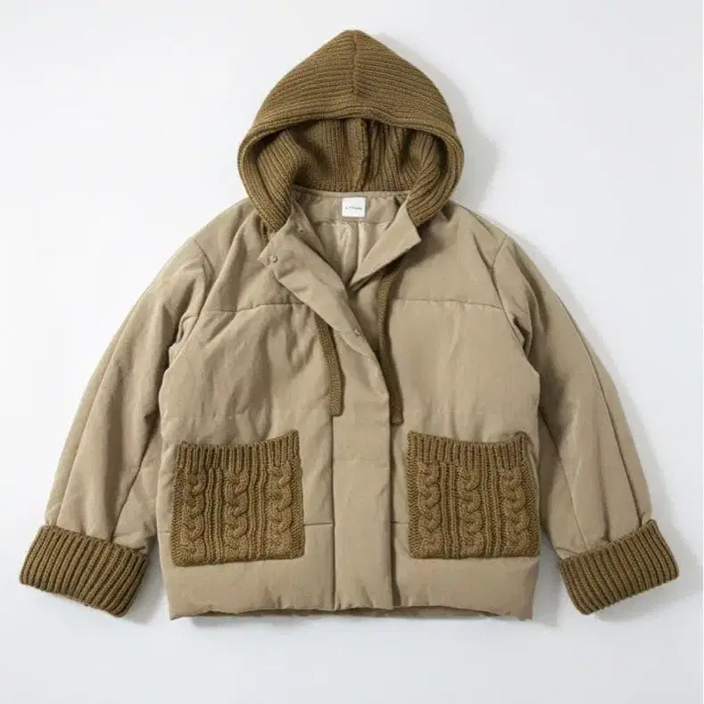 후드, 포켓, 소매에 고급스럽게 들어간 케이블 짜임의 니트 절개가 포인트.