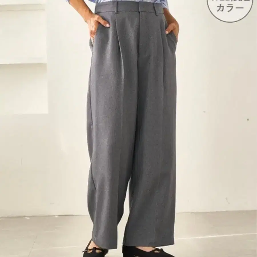 레이디 핸섬 시리즈 울 라이크 허리 턱 세미 와이드 팬츠 그레이
