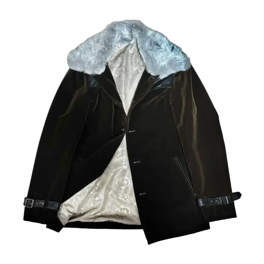 고급스러움 벨로아풍 자켓 큐프라 80% 퍼 브라운 소매 벨트 패턴 안감