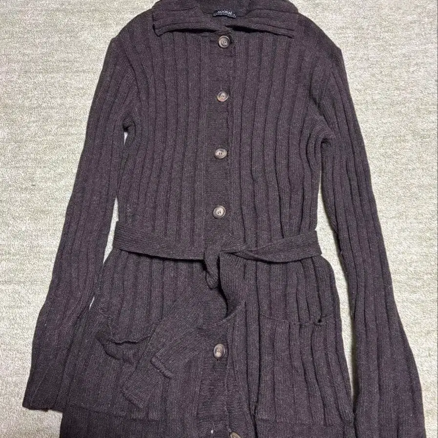 KOOKAI 쿠카이 리브 니트 롱 가디건 벨트 포함 브라운1