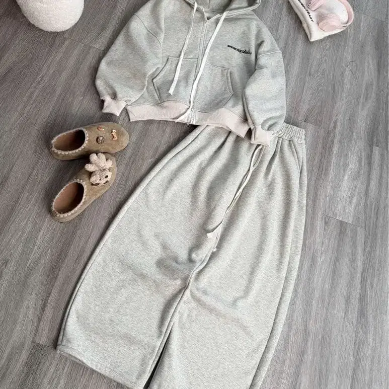 WHENEVER ATELIER 맨투맨 셋업 그레이 따뜻한 세트