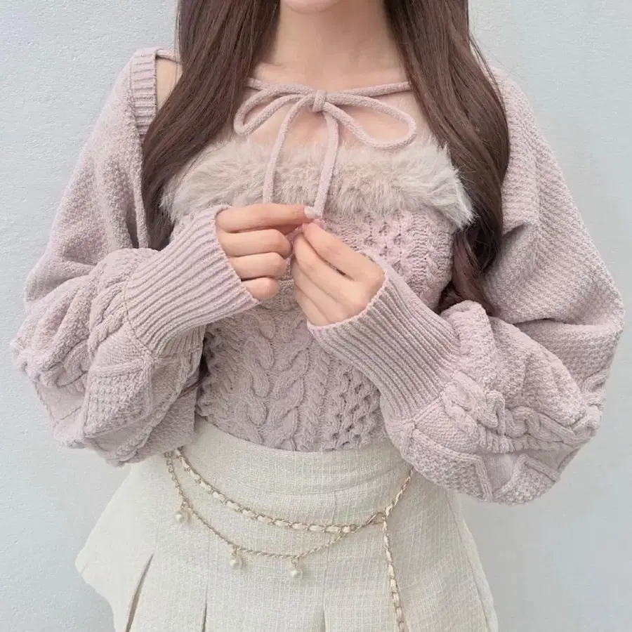 NOMAE 퍼 케이블 앙상블 니트 핑크